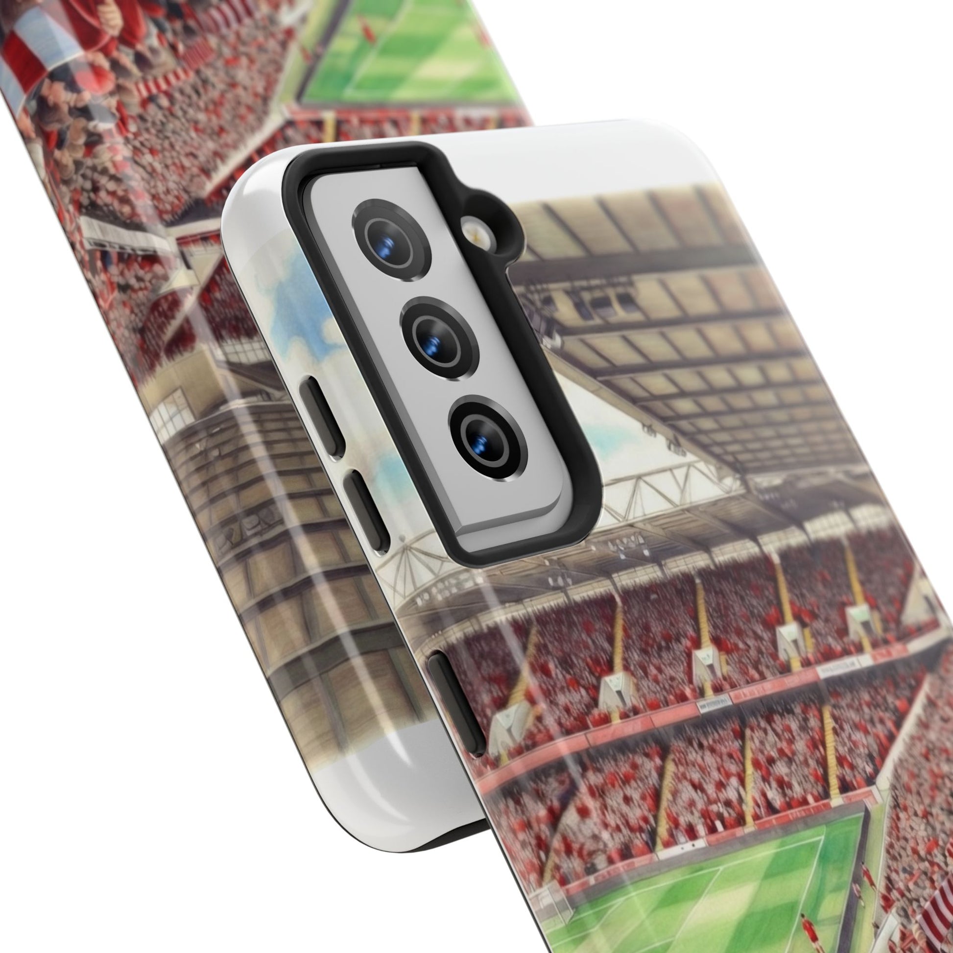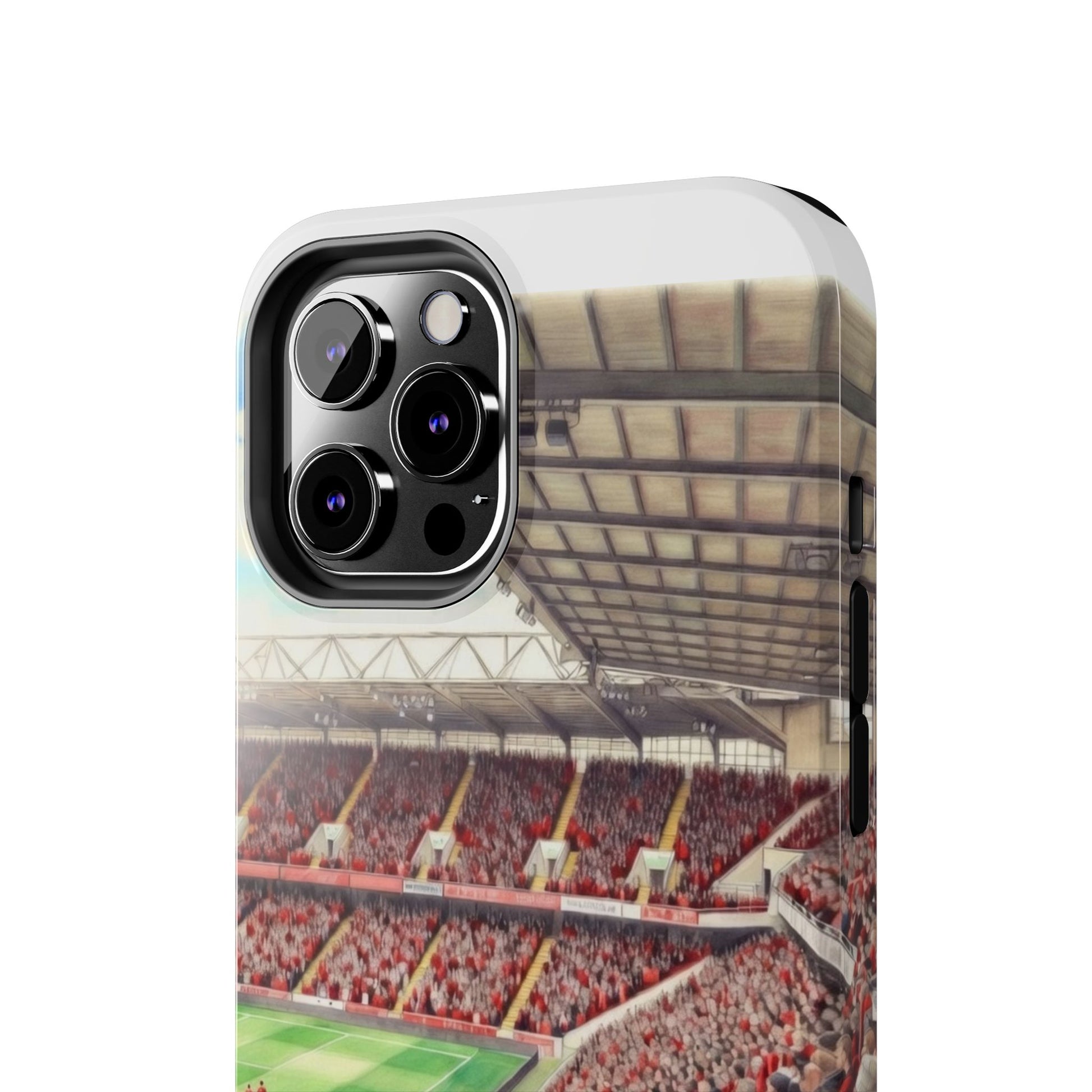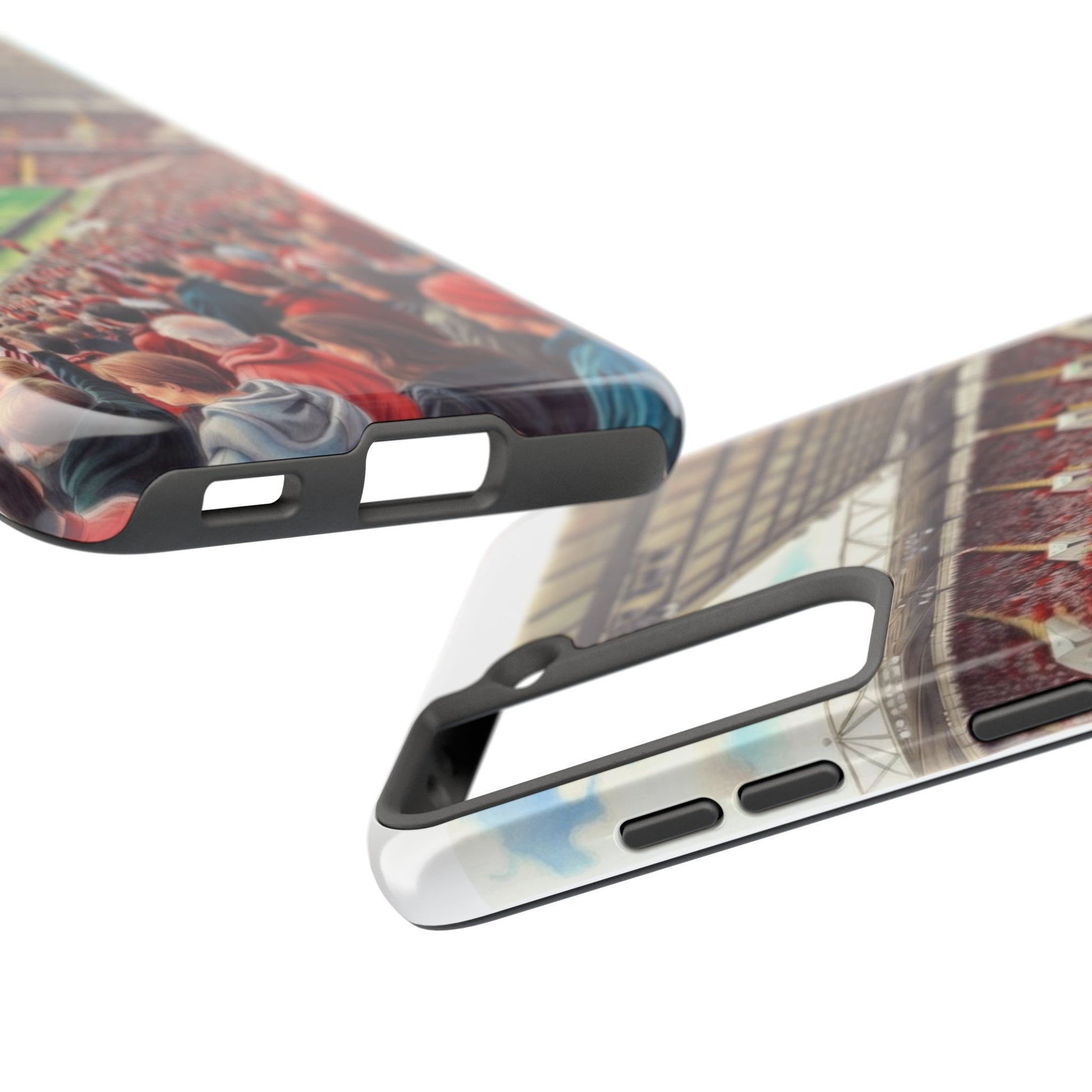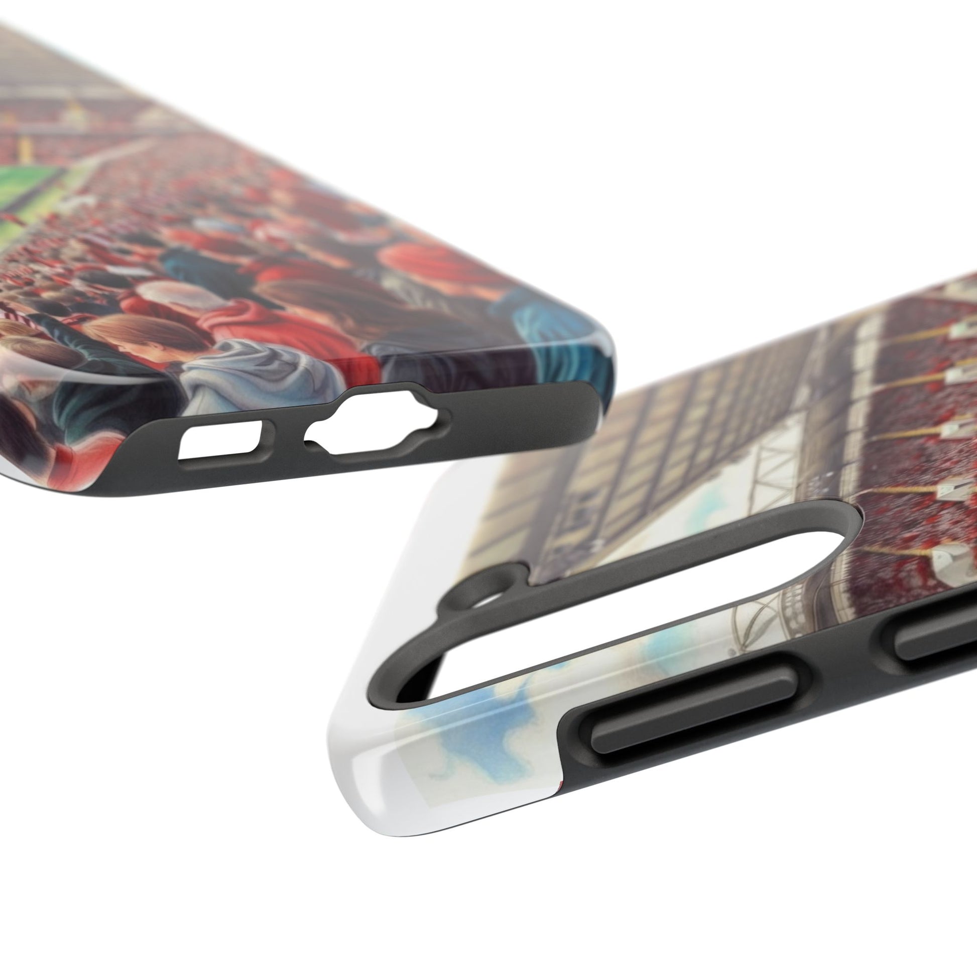 Feel the roar of the crowd every time you pick up your phone. This slim, glossy phone case wraps vivid stadium art around a tough polycarbonate shell and cushioned TPU liner — built to stand up to the rush of daily life while keeping your screen raised and safe. The print captures fans packed into the stands: scarves, beanies, and the electric green of the pitch. It’s a small, wearable reminder of match day energy — something to carry with you to commutes, travel, or the next trip to the ground.